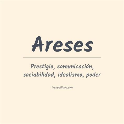 areses significado 2025年8月16日 — El nombre Ares tiene un origen griego y está asociado con el dios de la guerra en la mitología griega. Su significado se relaciona con la ...