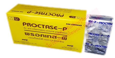3.proctase P เป็นเอนไซม์ต้านการอักเสบ ซึ่งมีตัวยาสำคัญ เอนไซม์ proctase 10 mg และ pancreatin 50 mg. ใช้บรรเทาอาการบวมหลังผ่าตัด บาดเจ็บ อาการอักเสบของ ...